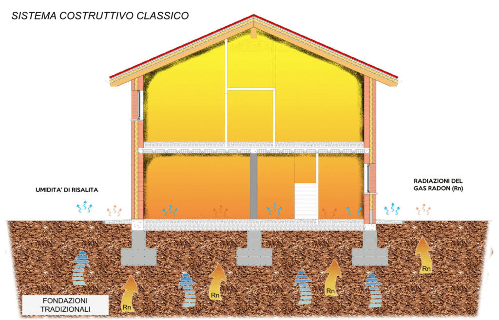 In un edificio la principale sorgente di radon è il suolo su cui esso poggia, per cui i locali più interessati da questo tipo di inquinamento sono gli interrati, i seminterrati e tutti quelli al pianoterra.